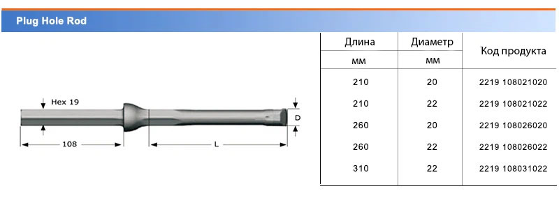 Буровая штанга для отверстий изготовлена из высококачественной стали, ее диаметр и длина могут варьироваться в зависимости от потребностей пользователя. Стандартный диаметр буровой штанги составляет от 22 до 45 мм, а стандартная длина — от 800 до 1200 мм.